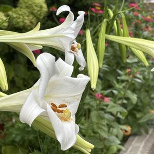🌱テッポウユリ ご近所さんの道沿いの花壇で綺麗に咲いてます。