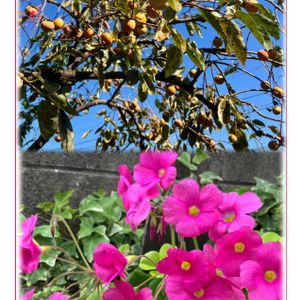 こんばんは♪ 日暮れが早くなりましたね ①②③散歩道で ①今日のお花 カキと近くに咲いて いたオキザリス ②オシロイバナ ③ヨメナ ④今朝の庭 昨日の夕焼けと百日草2種 🏷️素敵な日曜日 🏷️オレンジ色 🏷️明日はきっと良い日になる 参加します 今日一日お疲れ様でした また明日ー👋