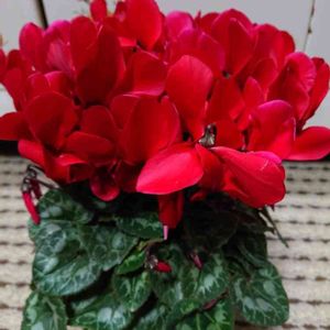 こんにちは😃❣️ 朝から良いお天気でした♡ 昨日 📸出来なかった 赤いシクラメンの花です❤️ 後ろの方は、3度目のお花が咲いてるベコニア 。 大型です☘️♡☘️ シクラメンは他のも足してリース仕立てにして見ようと 思っています。 上手くいったらup します😍