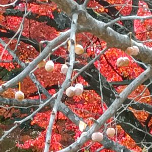 🍁ギンナンとモミジ 🌸桜の木とツツジ 🌸桜の木と赤く紅葉したツルの葉っぱ、どっちも主役 (*^o^*)綺麗ですね~🤗