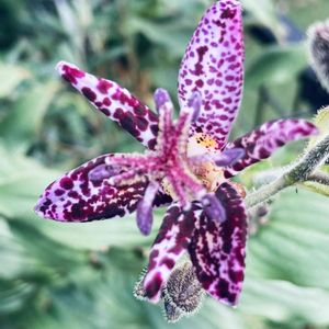 数日前からちらほら咲きはじめました 今年のホトトギスは危険な暑さで葉が 傷んでますが… お花はいつもと変わらず美しい… 艶やかに写りました🖤🖤🖤🖤