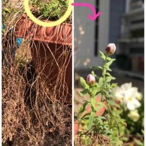 我が家のハナカンザシ🌸 去年から放置で枯れたのがそのまま😅 暖かくなって新芽が🌱出て 蕾が2つ…❤️ 枯れたの切らなきゃ😅