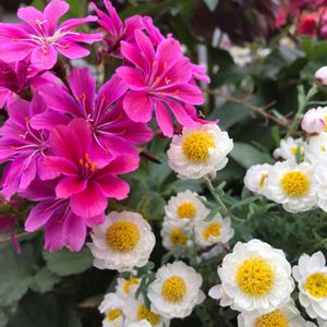 ハンギングバスケットのお花達💐 揃ってこっちを向いてる モリモリの花かんざし🌼 可愛いさ全開のレウィシア🌸💕 壁面を明るくしてくれてます💡🌟