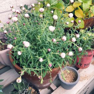 寄せ植えのハナカンザシ🌼 モリモリになってきたので✂してドライに✨可愛い❤
