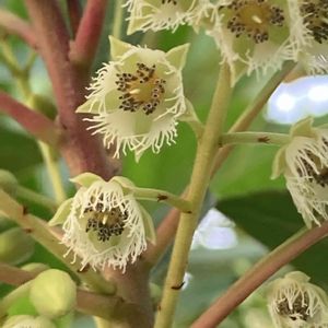 ホルトの木🌳🟢🟢 よそ様植栽 花びらが散りかけ‥✨✨かわいい実も顔を見せてます。