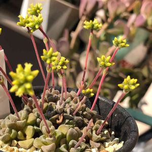 クラッスラが面白いこの頃🎶 ショップに居たこの多肉。私は初物でした😁 🍂フェンウッド クラッスラ属 植え替えて分かったのは、上に伸びずランナーを伸ばしてこんもりと横に広がるタイプです。 すでに何株かは根も出てました。 茎を切って増やします。 真ん中のボコボコは🌼花芽かな?