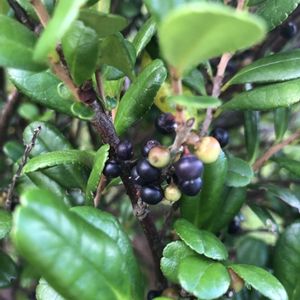 こんにちは✨😃❗️ ハマヒサカキ?に沢山の実がついています。🔴🔴🔴🟣🟣🟣