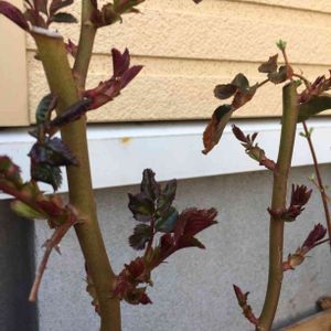 昨年秋、半額の半額まで待ってやっと購入した大苗のバラ。 モリモリ新芽を伸ばしております💕