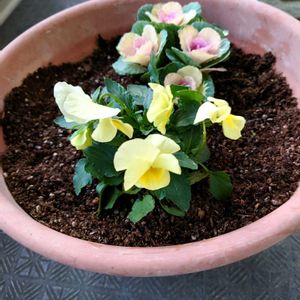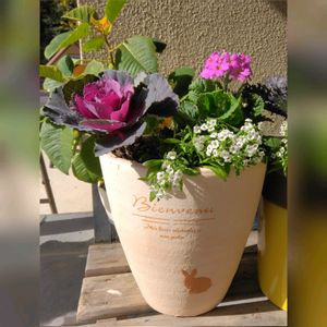 よく咲くスミレと葉牡丹を寄せ植えにしてみました