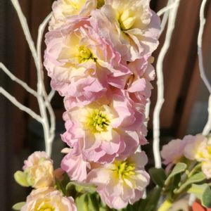 寒くてなかなか咲かなかったストックも、漸く年明けから咲いてます。 寒いから花も長持ち🥰 少し傷んだ🍊はヒョ🐦️ちゃんのオヤツに。