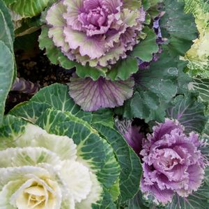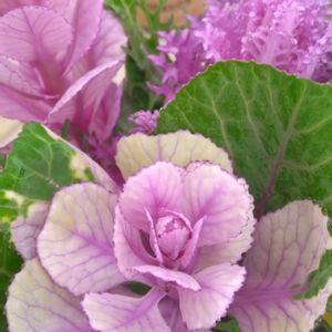 見切り品だったストックとポットマム 寒空の下元気に咲いてます 同じような色のビオラに埋もれてる葉ボタン 存在感薄い😆