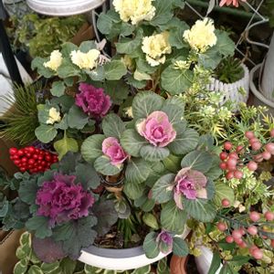 寄せ植えの葉牡丹、ピンクだったのに白くなりました😅 白もかわいいけど…でも…結構時間かけて選んでピンクに決めたんだけどな…