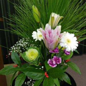 今日は仕事納め 秋になった?と思ったらあっという間に年末ですね笑 最後までお花大好きを楽しみたいと思います。ジュリアンはカラフルで元気が出ます☺️ 上 ジュリアン 葉ボタン シロタエギク 斑入りヘデラ 下 ジュリアン ネモフィラ ハートヘデラ