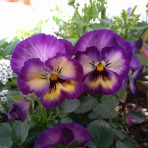 こんにちは☺️ よく咲くすみれブルーベリーパイ、仲良く並んでこちらを見ているようです☘️💜☘️💜