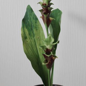 クルクマ活けました。すぐに活けなかったので、葉っぱの色が変わってしまい残念😢