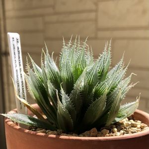 おはようございます🌧️ 昨年2月に株分けしたアルバンス。1年で鉢いっぱいになりました。 しかも、すでに分頭して群生の兆しです。 透明感もあり、すっと伸びた葉先やノギが美しい品種。 2枚目写真は親株です。来年あたりは5号鉢からはみ出しそうな勢いです。 ところで、ハオルチアの水やりですが、そろそろ梅雨前ラストのたっぷり水やりかな。 さまざまな管理方法があると思いますが、うちは梅雨に入る前に鉢内が蒸れない状態まで乾かしておきます。 梅雨時期は空中湿度だけでがんばってもらい、暑い夏はほぼ断水(根が乾燥しすぎない程度の底面給水)しています。