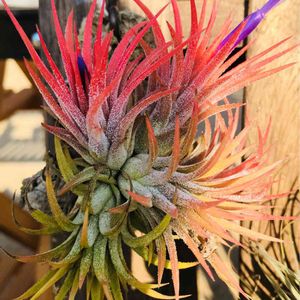 イオナンタの小さなクランプです。🌸🌿 しっかりと色ずいています。 活着根もコルクにしがみ付き 今は、毎日🌞昼は、外にだしてます。 夜は、しっかり加湿器でチランジアを囲っています。外の風で活着根が増えてるような気がします。なるべく南米の自然に近づけたいですね。🤗