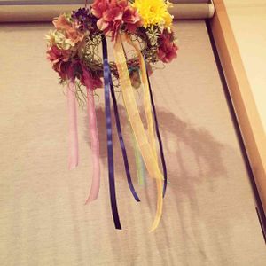 シルクフラワーで作成した フライングリース! 玄関にいます 風が流れると シフォンリボンがフワフワして いい感じです(o´艸`)
