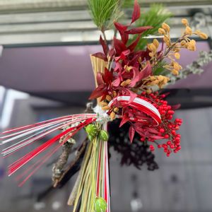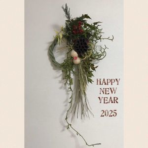 あけましておめでとうございます 皆さん、今年もよろしくお願いします お正月飾り 購入したものです 記録用に🤭 素敵なので、ホントは全体を撮りたかったんですが、何度撮っても自分がメインに映り込みこれが精一杯笑