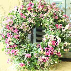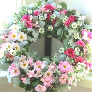 よく咲くスミレのピンクでふわっふわのリースを作ってみました☆ ハンギングコンテストってリースでもいいのかな?