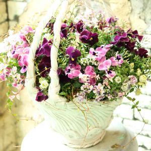 ビオラのファルファリアという品種をたっぷり使った壁に掛けられるバスケットです☆