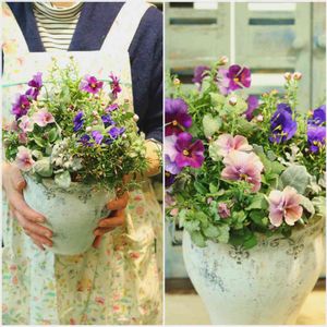 本日の午前中レッスンに来てくださったお客様の作品 パンジー プチグレースとよく咲くスミレのピンクを使ったお洒落な作品♪ 花材は全部お客様が選んだものです。自分で選べない場合はこちらでご用意しますので是非一度レッスンにいらして下さいね〜♪