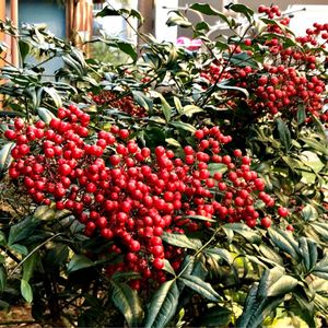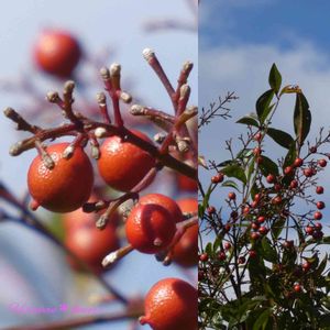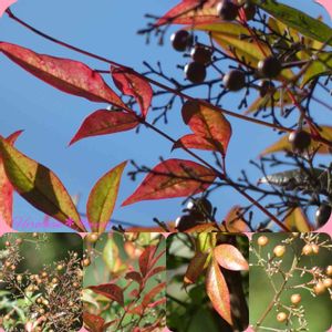 ナンテン メギ科ナンテン属 表庭 (左 去年の撮影) 裏庭 ( 右 今日の撮影) 裏庭で赤い実を発見🙌 ビックリです😲 日の当たる表庭は 青い実のまま🤔 再度投稿すみません🙏