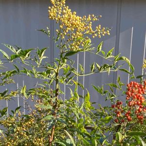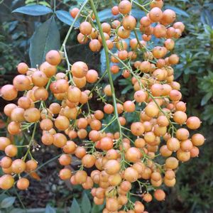 オレンジ色のナンテン🟠 庭のあちこちにあるナンテン🌿みんな真っ赤になってきてるけど… この子たちはオレンジ色。 日陰だから?それとも 種類が違うのかしら🙄