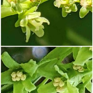 宿り木の花が咲きました。 今、咲いているのは雄花(雄株)のようです。 花の大きさは直径7ミリ位です。 実が残っているのは雌株でしょうか。 まだ花は見られませんでしたが、見落としたかもしれませんね❗ もう一度、確認してきます。