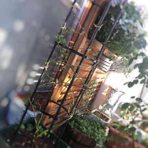 おはようございます☀ 大規模修繕工事もベランダは無事終わり、 取り敢えずは少しレイアウト変えてみました(*^^*) 木香薔薇のアーチは、結束バンド・ワイヤー・大鉢でびくともしませんが、 🌱や、やはり万が一を考えたらいずれは室外機側に固定しようかな…と思っています。 しばしこの状況を楽しみます╰(*´︶`*)╯♡ ジャングルになっていたオベリスクの木香薔薇は、2株でしたので植え替えしてしまいました😅 春にお花咲くかしら💦