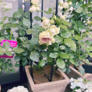 おはようございます☀クラリスが満開💕パシュミナはゆっくりゆっくり…🐢。意外に同じ房咲きでもクラリスは咲き始めると思いっきりが良い子🤣 つるバラとしてオベリスクに巻いていますが…来年はもう少し丈も伸びるかしら… これだけ開花してくるとふわっと香りも…😆 🏷純白マニア