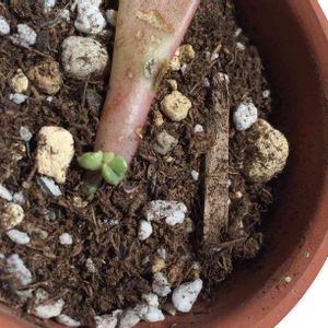 カメラを出したので限界まで接写してみました。葉挿しベビー、なかなか大きくならないなぁ。日に当ててないから?でも小さくても頑張ってます!