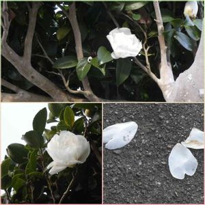 今日のお花 サザンカ 白い八重咲きの山茶花です。 日本原産の山茶花【サザンカ】 江戸時代に長崎の出島からヨーロッパに伝わり、和名がそのまま学名になった植物です。 『さざんか、さざんか、咲いた道..』と歌われる童謡、日本人にとって馴染みの深い植物です。