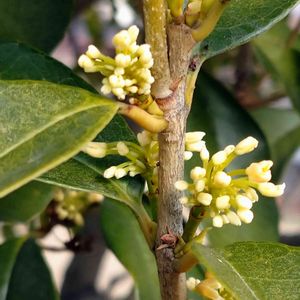 今日の散歩道🐕🦺……🚶♀️ 風が冷たかった~🤧 これはウズキモクセイですかね? 前から気になって 📱✨