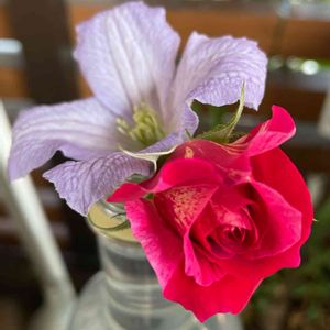 クレマチスのエミリアプラターと、バラのギーサヴォアを挿してみました。 今日は連投すいません。