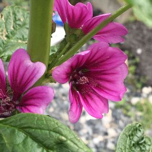 カインズホーム の 駐車場片隅に 咲いてましたよ〜〜😊👆 ガーゼのハンカチに 市販のマスクの紐を付けて とりあえず、マスク完成😅 花粉症くらいには、 効果あるかな?