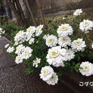 今日は、☔️ ブロック塀と、道路の隙間 5㌢くらいの場所 1列に🎶🎶🎶 こんな、 素敵な植え方あるのね🎶