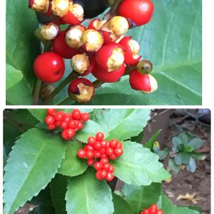 今日 近所の公園で、 あれ?万両?千両? 白いつぶ?が、赤くなるの? ん?鳥が、かじった? こんなの 初めて見た〜〜😳