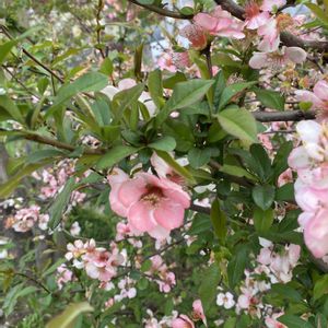 ボケのお花、優しいお色で咲いています✨🩷🩷🩷💫