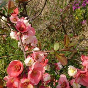 春の花まつり ボケの花🌸 塀越しに覗いてる