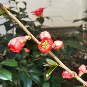 放春花 (ボケ) バラ科 国華 バラ科 3️⃣ 3番咲きボケの花🌿💖コッカが 咲きました😊🎶 淡い赤色で陽を浴びて。。。 とても綺麗です💖✨🌿 桜🌸✨も満開に近く綺麗でしたが… 私家のボケの花もほぼ満開で 綺麗です😍💓🎶 春っていいなぁ〜😊💓🍀