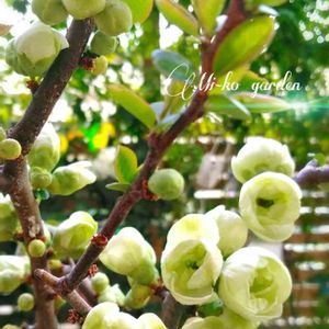 🌿✴️🌿 ボケの花がコロンコロンと咲きました✨ 黄緑色なんですよねー🌿 白だったはず💦 面白いです(*´-`) ✨✨✨✨✨