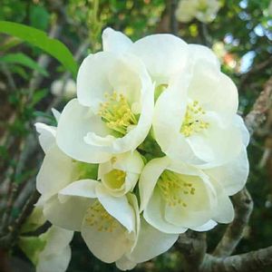 おはようございます(^-^)/ 今朝の1枚はボケの花 真っ白で透き通る色が素敵 癒されます✨