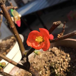 我が家のベランダにボケが咲きました😊 春だな~🤗