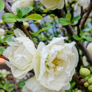 今日の散歩🚶♂️ 白いボケの花が、雨に濡れて 綺麗でした👍️
