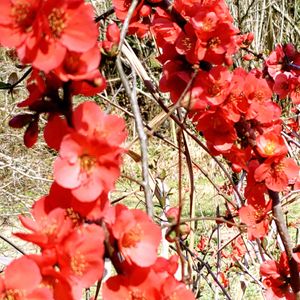 おはようございます。 今日は晴れ☀良い天気です。☺️ 先日お散歩中、ボケの花が 満開でした。🤩 今日も一日 頑張って行きましょう。💪😉💪