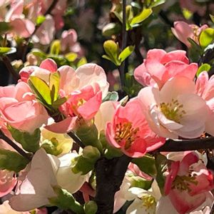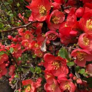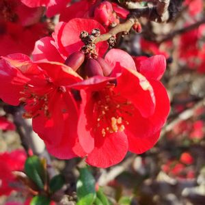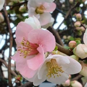 暖かな陽気に誘われ庭に出ると〜沈丁花の香りが一面に漂い!! 長寿ボケの花が咲き始めている!! 去年はカリンの様な実が4個 なり、ジャムを作ったね〜 美味でとても美味しいかったよ…少しだが👏😄🎶 今年も待ち遠しいなぁ🙋💕