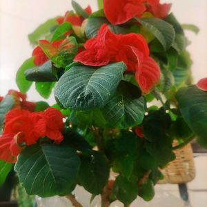 💚❤️ポインセチア❤️💚 クシュとしたホウ(苞)が可愛いです💕 赤に黄色が混じるヒボタン((緋牡丹)です♪