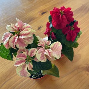 ポインセチア ウインターローズちゃんです。 1枚目は、昨年からの子 2枚目は、昨日見つけた子です。この子が、目標ですが 赤くシワシワに、なってくれるかな〜😍 って…今日は 上手く投稿出来ているか?も、心配です。