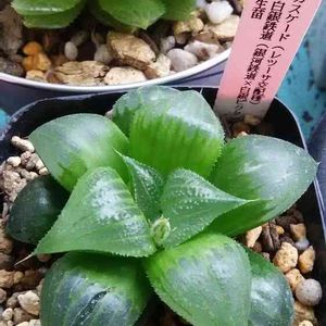 深夜デス…もう日付が変わってるので 昨日の事 国際多肉植物協会の例会に参加して来ました。 (300円でアマチュア参加出来ちゃう) 即売会で左下のマリンちゃんの実生と 右下のシンビフォルミスをゲット❗️ マリンちゃんは「生まれる確率が低くて💦」って言う 生産者さんの苦労話に釣られて😅 ちゃんと育てられるのか❓と思ったっけど 「チャレンジ価格にするよ」でいただく事に シンビフォルミスは「原産地がB oak eus Valleyだよ」って会長が売ってるんだから間違い無い👍 その後品評会などの後セリ開始❗️ セリが始まる前に下見してて決めてた子 しかし名札にOB–10💦OB–1の間違いじゃ❓ の不安もありつつ競り勝つ💪 あとでビビって日本ハオルシア協会のHPで確認。 「紫オブツーサ」はH. levistaの品種グループ(正名は紫オブト)と言うことになり、その中に‘ドドソン紫’(OB-1、OB-10)とか、‘天涯オブト’などの個体品種があると言うことになります。と記述あり😊 今年の目標を達成してしまった😅 しかし、去年は徒長や根腐れを経験したから 今年は綺麗に育てる事を新たな目標にします❗️ で、もう一丁ボルシー×オブツーサの ノギのもけもけに惹かれて競り勝つ💪 興奮気味で眠くならないのでした😝
